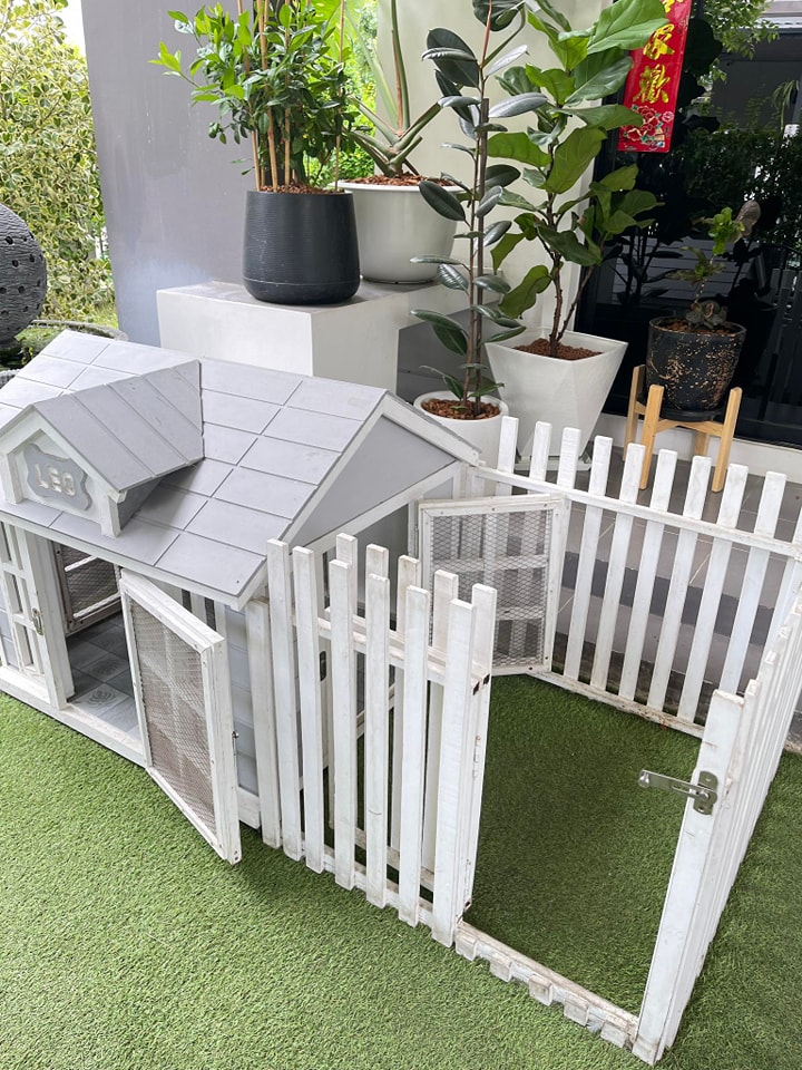 ตัวบ้านมีประตูและมีพื้นที่ให้น้องเล่นนอกตัวบ้าน